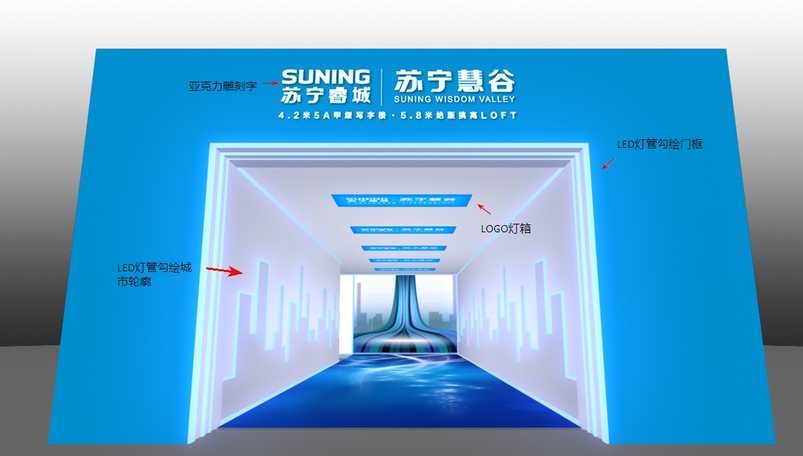 美湖展覽設計公司參與了南京蘇寧慧谷甲級寫字樓樣板房樓道的展廳設計,通過藍色和白色相間的策劃,凸顯了蘇寧睿城所追求的目標是和業主共贏的生態鏈.